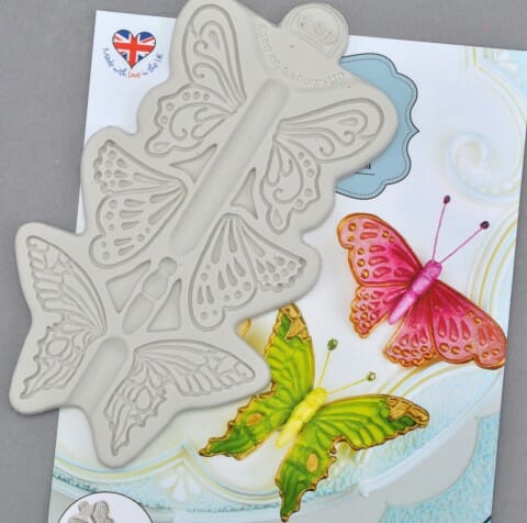 Finally, the butterfly trio mold! As its name suggests, this mold comes with three sets of delicate butterfly wings, and a butterfly body. The level of detail is incredible, and the mold can be folded to enable the back side of each wing to be detailed along with the front! When the wings are painted and dusted, they create a big impact on any cake or cupcake!