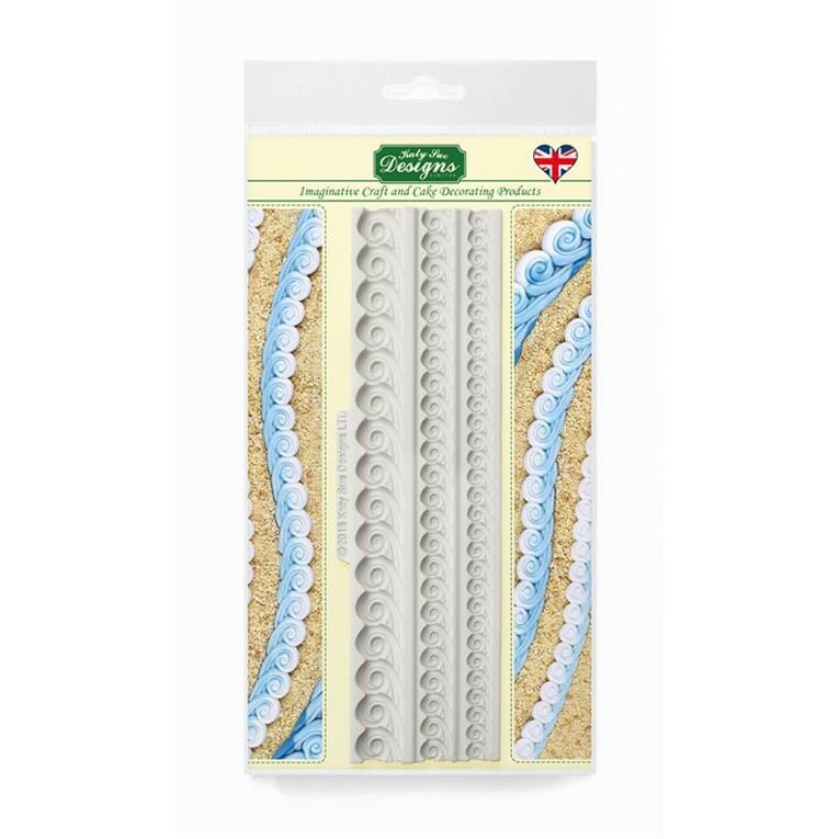 Oh, I love this Sea Swirl Border mold! The swirls look like rolling waves! The three different sizes ensure that you are ready for any size cake with any sized waves! I love how you can do all blue waves, or use dusting powder or an airbrush to create white cap waves!